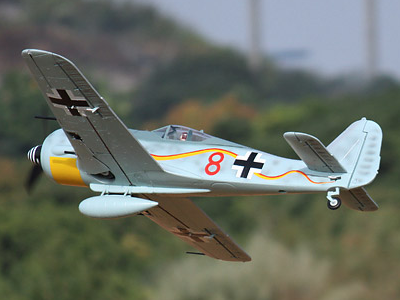 This Freewing FW-190 has many features and scale details not normally found on planes of this size. The FW-190 from Freewing has amazing features such as retractable landing gear and navigation lights while it also has details such as a removable drop tank, scale canons, and and an amazing paint job. This planes flies extremely well. While a 3S 1600mAh LiPo pack is recommended, the Freewing Model pilots have been using 3S 2200 packs for extra flight time.
