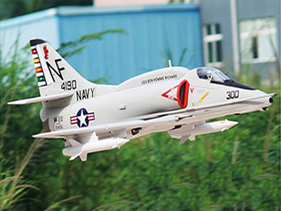 To honor this beloved aircraft, Freewing offers the Freewing 80mm A-4E/F Skyhawk! The biggest mass produced foam electric PNP A-4 in the world, this flying model is powered by a 3530-1850kv brushless outrunner motor and 12 blade EDF ducted fan, achieving a top speed of 95 mph/150kph using the recommended 6s 5000mAh battery. Nearly the same scale as Freewing's popular MiG-21, Freewing's A-4 is part of our "big 80" series and like the MiG-21 was designed to accommodate a wide range of battery sizes. See the comparison photo with our Freewing twin 80mm F-14 to get a sense of the A-4's overall displacement!