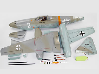 Dual 60A ESCs and powerful 2150kV brushless motors give the Me262's twin EDFs the thrust to reach speeds in excess of 100 MPH !